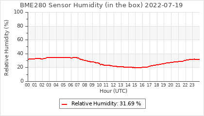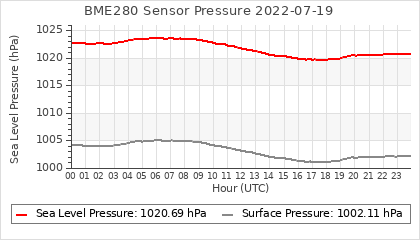 Experimental atmospheric pressure measurement with a simple sensor: BOSCH BME280The instrument is in the data collection box of the CR10X, the temperature and humidity do not reflect the real air conditions, because the box is in the sun and is not properly ventilated for these measurements.