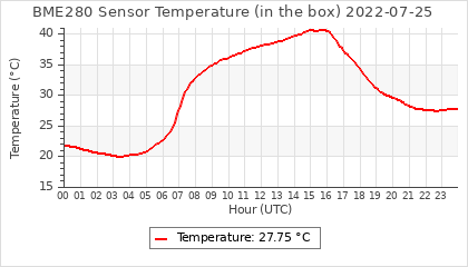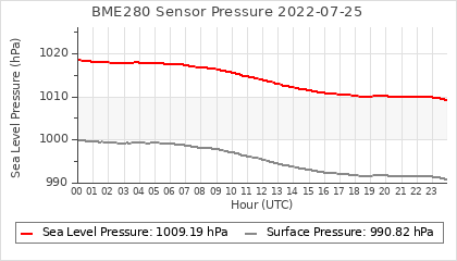 Experimental atmospheric pressure measurement with a simple sensor: BOSCH BME280The instrument is in the data collection box of the CR10X, the temperature and humidity do not reflect the real air conditions, because the box is in the sun and is not properly ventilated for these measurements.