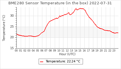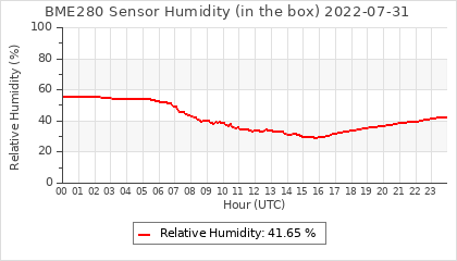 Experimental atmospheric pressure measurement with a simple sensor: BOSCH BME280The instrument is in the data collection box of the CR10X, the temperature and humidity do not reflect the real air conditions, because the box is in the sun and is not properly ventilated for these measurements.