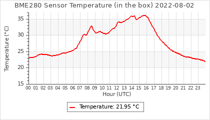 Experimental atmospheric pressure measurement with a simple sensor: BOSCH BME280The instrument is in the data collection box of the CR10X, the temperature and humidity do not reflect the real air conditions, because the box is in the sun and is not properly ventilated for these measurements.