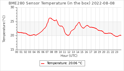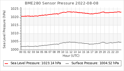 Experimental atmospheric pressure measurement with a simple sensor: BOSCH BME280The instrument is in the data collection box of the CR10X, the temperature and humidity do not reflect the real air conditions, because the box is in the sun and is not properly ventilated for these measurements.