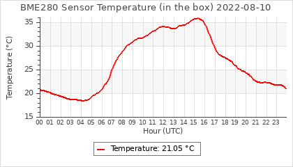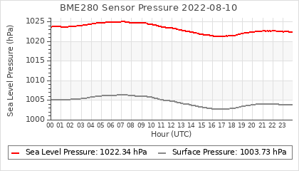 Experimental atmospheric pressure measurement with a simple sensor: BOSCH BME280The instrument is in the data collection box of the CR10X, the temperature and humidity do not reflect the real air conditions, because the box is in the sun and is not properly ventilated for these measurements.