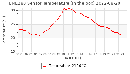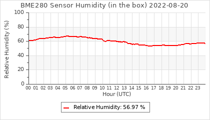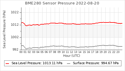 Experimental atmospheric pressure measurement with a simple sensor: BOSCH BME280The instrument is in the data collection box of the CR10X, the temperature and humidity do not reflect the real air conditions, because the box is in the sun and is not properly ventilated for these measurements.