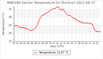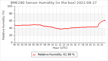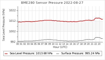 Experimental atmospheric pressure measurement with a simple sensor: BOSCH BME280The instrument is in the data collection box of the CR10X, the temperature and humidity do not reflect the real air conditions, because the box is in the sun and is not properly ventilated for these measurements.