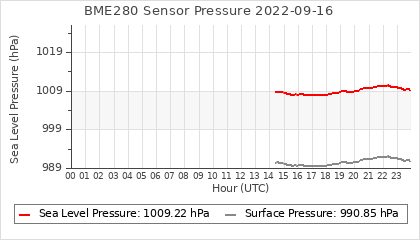 Experimental atmospheric pressure measurement with a simple sensor: BOSCH BME280The instrument is in the data collection box of the CR10X, the temperature and humidity do not reflect the real air conditions, because the box is in the sun and is not properly ventilated for these measurements.