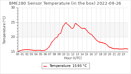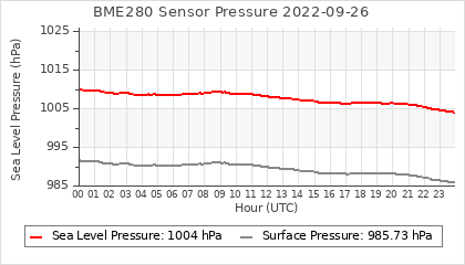 Experimental atmospheric pressure measurement with a simple sensor: BOSCH BME280The instrument is in the data collection box of the CR10X, the temperature and humidity do not reflect the real air conditions, because the box is in the sun and is not properly ventilated for these measurements.