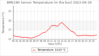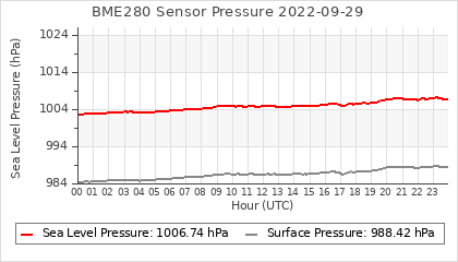 Experimental atmospheric pressure measurement with a simple sensor: BOSCH BME280The instrument is in the data collection box of the CR10X, the temperature and humidity do not reflect the real air conditions, because the box is in the sun and is not properly ventilated for these measurements.