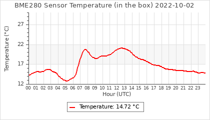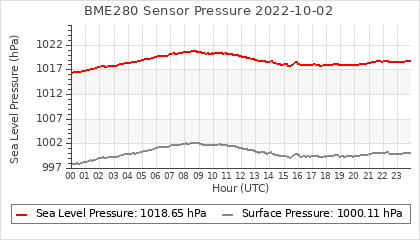 Experimental atmospheric pressure measurement with a simple sensor: BOSCH BME280The instrument is in the data collection box of the CR10X, the temperature and humidity do not reflect the real air conditions, because the box is in the sun and is not properly ventilated for these measurements.