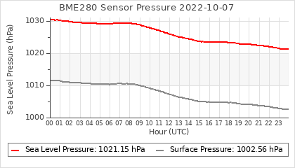 Experimental atmospheric pressure measurement with a simple sensor: BOSCH BME280The instrument is in the data collection box of the CR10X, the temperature and humidity do not reflect the real air conditions, because the box is in the sun and is not properly ventilated for these measurements.