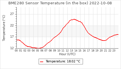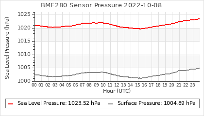 Experimental atmospheric pressure measurement with a simple sensor: BOSCH BME280The instrument is in the data collection box of the CR10X, the temperature and humidity do not reflect the real air conditions, because the box is in the sun and is not properly ventilated for these measurements.