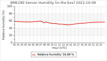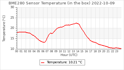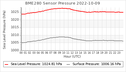 Experimental atmospheric pressure measurement with a simple sensor: BOSCH BME280The instrument is in the data collection box of the CR10X, the temperature and humidity do not reflect the real air conditions, because the box is in the sun and is not properly ventilated for these measurements.