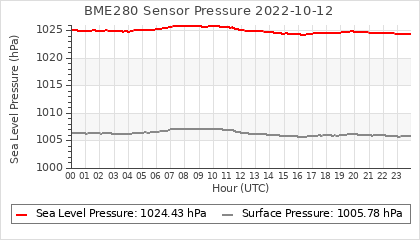 Experimental atmospheric pressure measurement with a simple sensor: BOSCH BME280The instrument is in the data collection box of the CR10X, the temperature and humidity do not reflect the real air conditions, because the box is in the sun and is not properly ventilated for these measurements.