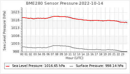 Experimental atmospheric pressure measurement with a simple sensor: BOSCH BME280The instrument is in the data collection box of the CR10X, the temperature and humidity do not reflect the real air conditions, because the box is in the sun and is not properly ventilated for these measurements.
