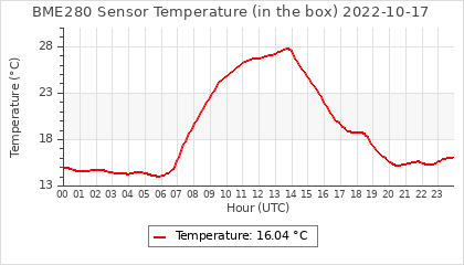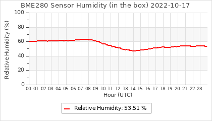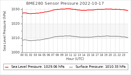 Experimental atmospheric pressure measurement with a simple sensor: BOSCH BME280The instrument is in the data collection box of the CR10X, the temperature and humidity do not reflect the real air conditions, because the box is in the sun and is not properly ventilated for these measurements.