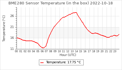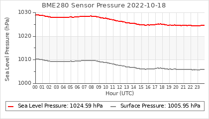 Experimental atmospheric pressure measurement with a simple sensor: BOSCH BME280The instrument is in the data collection box of the CR10X, the temperature and humidity do not reflect the real air conditions, because the box is in the sun and is not properly ventilated for these measurements.