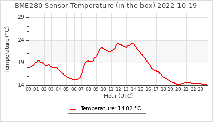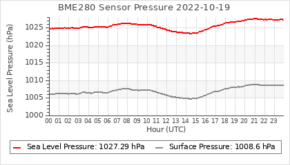 Experimental atmospheric pressure measurement with a simple sensor: BOSCH BME280The instrument is in the data collection box of the CR10X, the temperature and humidity do not reflect the real air conditions, because the box is in the sun and is not properly ventilated for these measurements.