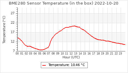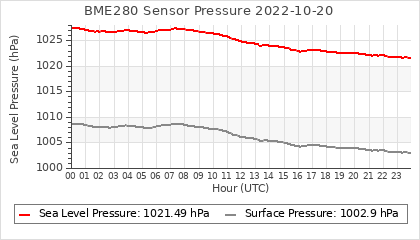 Experimental atmospheric pressure measurement with a simple sensor: BOSCH BME280The instrument is in the data collection box of the CR10X, the temperature and humidity do not reflect the real air conditions, because the box is in the sun and is not properly ventilated for these measurements.