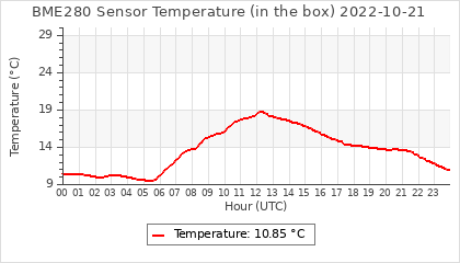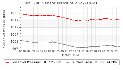 Experimental atmospheric pressure measurement with a simple sensor: BOSCH BME280The instrument is in the data collection box of the CR10X, the temperature and humidity do not reflect the real air conditions, because the box is in the sun and is not properly ventilated for these measurements.