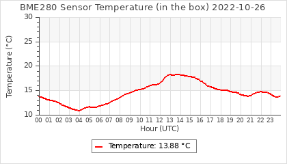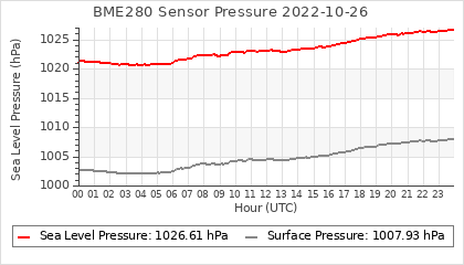 Experimental atmospheric pressure measurement with a simple sensor: BOSCH BME280The instrument is in the data collection box of the CR10X, the temperature and humidity do not reflect the real air conditions, because the box is in the sun and is not properly ventilated for these measurements.