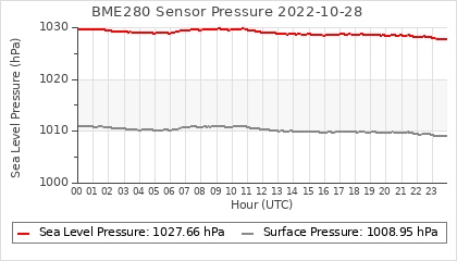 Experimental atmospheric pressure measurement with a simple sensor: BOSCH BME280The instrument is in the data collection box of the CR10X, the temperature and humidity do not reflect the real air conditions, because the box is in the sun and is not properly ventilated for these measurements.