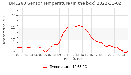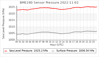 Experimental atmospheric pressure measurement with a simple sensor: BOSCH BME280The instrument is in the data collection box of the CR10X, the temperature and humidity do not reflect the real air conditions, because the box is in the sun and is not properly ventilated for these measurements.