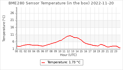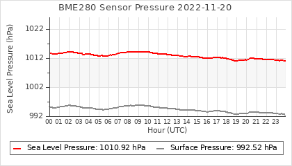 Experimental atmospheric pressure measurement with a simple sensor: BOSCH BME280The instrument is in the data collection box of the CR10X, the temperature and humidity do not reflect the real air conditions, because the box is in the sun and is not properly ventilated for these measurements.