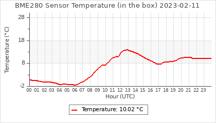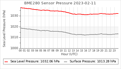 Experimental atmospheric pressure measurement with a simple sensor: BOSCH BME280The instrument is in the data collection box of the CR10X, the temperature and humidity do not reflect the real air conditions, because the box is in the sun and is not properly ventilated for these measurements.