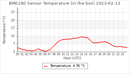 Experimental atmospheric pressure measurement with a simple sensor: BOSCH BME280The instrument is in the data collection box of the CR10X, the temperature and humidity do not reflect the real air conditions, because the box is in the sun and is not properly ventilated for these measurements.