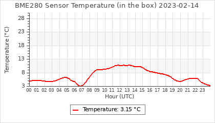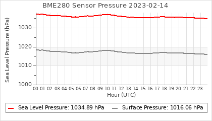 Experimental atmospheric pressure measurement with a simple sensor: BOSCH BME280The instrument is in the data collection box of the CR10X, the temperature and humidity do not reflect the real air conditions, because the box is in the sun and is not properly ventilated for these measurements.