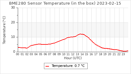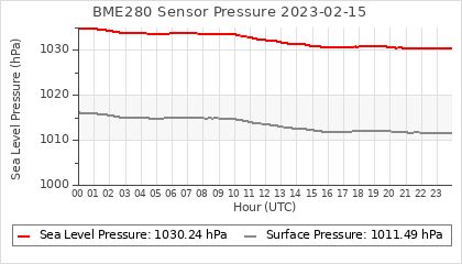 Experimental atmospheric pressure measurement with a simple sensor: BOSCH BME280The instrument is in the data collection box of the CR10X, the temperature and humidity do not reflect the real air conditions, because the box is in the sun and is not properly ventilated for these measurements.