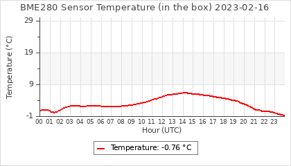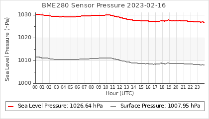 Experimental atmospheric pressure measurement with a simple sensor: BOSCH BME280The instrument is in the data collection box of the CR10X, the temperature and humidity do not reflect the real air conditions, because the box is in the sun and is not properly ventilated for these measurements.