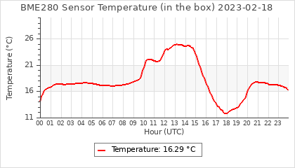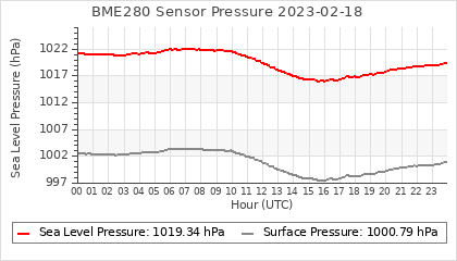 Experimental atmospheric pressure measurement with a simple sensor: BOSCH BME280The instrument is in the data collection box of the CR10X, the temperature and humidity do not reflect the real air conditions, because the box is in the sun and is not properly ventilated for these measurements.