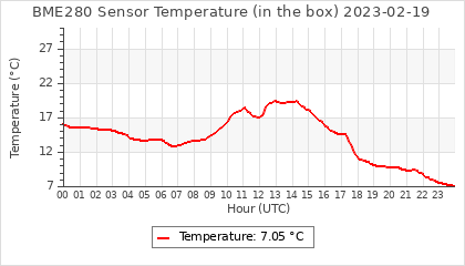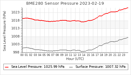 Experimental atmospheric pressure measurement with a simple sensor: BOSCH BME280The instrument is in the data collection box of the CR10X, the temperature and humidity do not reflect the real air conditions, because the box is in the sun and is not properly ventilated for these measurements.