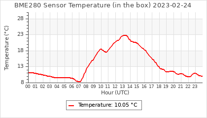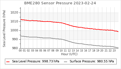 Experimental atmospheric pressure measurement with a simple sensor: BOSCH BME280The instrument is in the data collection box of the CR10X, the temperature and humidity do not reflect the real air conditions, because the box is in the sun and is not properly ventilated for these measurements.