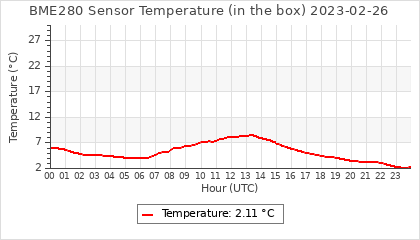 Experimental atmospheric pressure measurement with a simple sensor: BOSCH BME280The instrument is in the data collection box of the CR10X, the temperature and humidity do not reflect the real air conditions, because the box is in the sun and is not properly ventilated for these measurements.