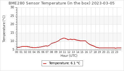 Experimental atmospheric pressure measurement with a simple sensor: BOSCH BME280The instrument is in the data collection box of the CR10X, the temperature and humidity do not reflect the real air conditions, because the box is in the sun and is not properly ventilated for these measurements.