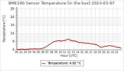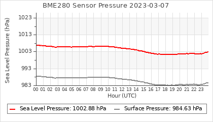 Experimental atmospheric pressure measurement with a simple sensor: BOSCH BME280The instrument is in the data collection box of the CR10X, the temperature and humidity do not reflect the real air conditions, because the box is in the sun and is not properly ventilated for these measurements.