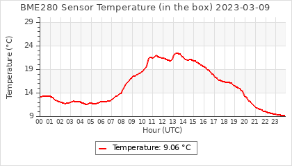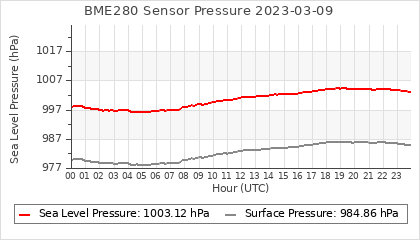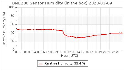 Experimental atmospheric pressure measurement with a simple sensor: BOSCH BME280The instrument is in the data collection box of the CR10X, the temperature and humidity do not reflect the real air conditions, because the box is in the sun and is not properly ventilated for these measurements.