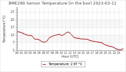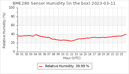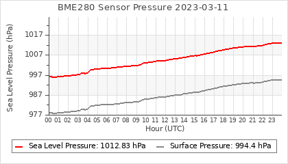 Experimental atmospheric pressure measurement with a simple sensor: BOSCH BME280The instrument is in the data collection box of the CR10X, the temperature and humidity do not reflect the real air conditions, because the box is in the sun and is not properly ventilated for these measurements.