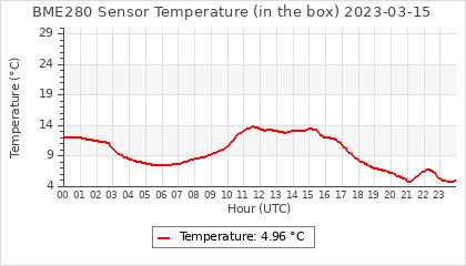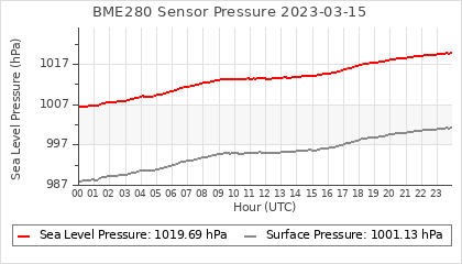 Experimental atmospheric pressure measurement with a simple sensor: BOSCH BME280The instrument is in the data collection box of the CR10X, the temperature and humidity do not reflect the real air conditions, because the box is in the sun and is not properly ventilated for these measurements.