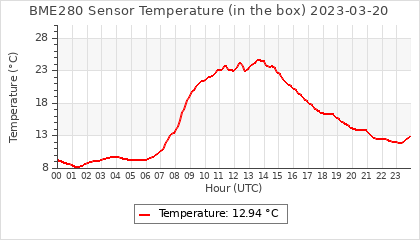 Experimental atmospheric pressure measurement with a simple sensor: BOSCH BME280The instrument is in the data collection box of the CR10X, the temperature and humidity do not reflect the real air conditions, because the box is in the sun and is not properly ventilated for these measurements.
