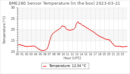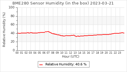 Experimental atmospheric pressure measurement with a simple sensor: BOSCH BME280The instrument is in the data collection box of the CR10X, the temperature and humidity do not reflect the real air conditions, because the box is in the sun and is not properly ventilated for these measurements.