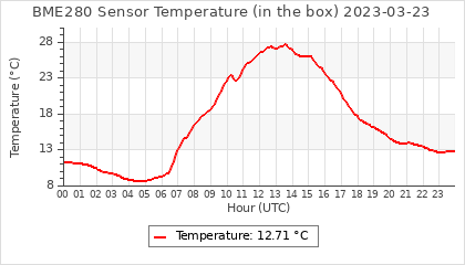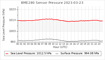 Experimental atmospheric pressure measurement with a simple sensor: BOSCH BME280The instrument is in the data collection box of the CR10X, the temperature and humidity do not reflect the real air conditions, because the box is in the sun and is not properly ventilated for these measurements.