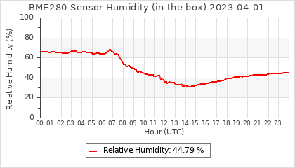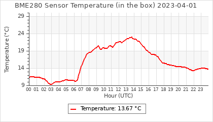 Experimental atmospheric pressure measurement with a simple sensor: BOSCH BME280The instrument is in the data collection box of the CR10X, the temperature and humidity do not reflect the real air conditions, because the box is in the sun and is not properly ventilated for these measurements.