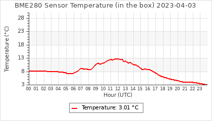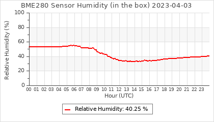 Experimental atmospheric pressure measurement with a simple sensor: BOSCH BME280The instrument is in the data collection box of the CR10X, the temperature and humidity do not reflect the real air conditions, because the box is in the sun and is not properly ventilated for these measurements.