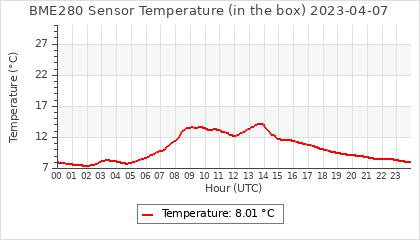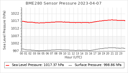 Experimental atmospheric pressure measurement with a simple sensor: BOSCH BME280The instrument is in the data collection box of the CR10X, the temperature and humidity do not reflect the real air conditions, because the box is in the sun and is not properly ventilated for these measurements.