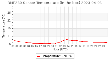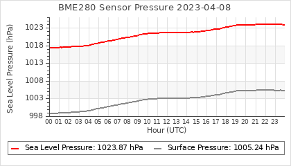 Experimental atmospheric pressure measurement with a simple sensor: BOSCH BME280The instrument is in the data collection box of the CR10X, the temperature and humidity do not reflect the real air conditions, because the box is in the sun and is not properly ventilated for these measurements.