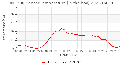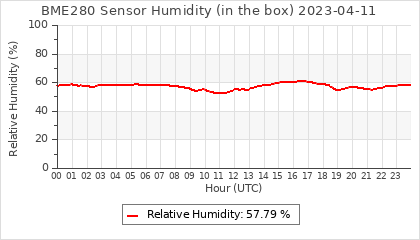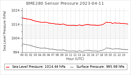 Experimental atmospheric pressure measurement with a simple sensor: BOSCH BME280The instrument is in the data collection box of the CR10X, the temperature and humidity do not reflect the real air conditions, because the box is in the sun and is not properly ventilated for these measurements.