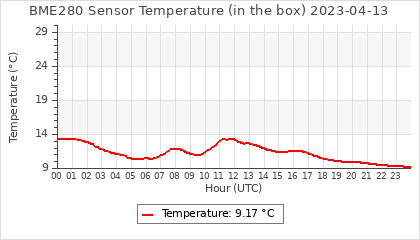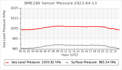 Experimental atmospheric pressure measurement with a simple sensor: BOSCH BME280The instrument is in the data collection box of the CR10X, the temperature and humidity do not reflect the real air conditions, because the box is in the sun and is not properly ventilated for these measurements.