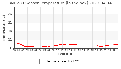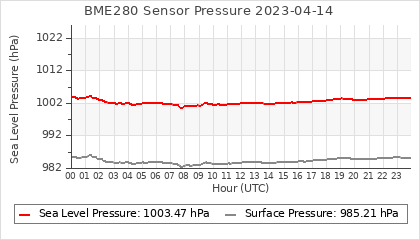 Experimental atmospheric pressure measurement with a simple sensor: BOSCH BME280The instrument is in the data collection box of the CR10X, the temperature and humidity do not reflect the real air conditions, because the box is in the sun and is not properly ventilated for these measurements.